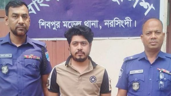 নিজস্ব প্রতিবেদক :বৃহস্পতিবার দিবাগত রাত আনুমানিক ২টা ৩০ মিনিটে শিবপুর থানার পুটিয়া ইউনিয়নের কামারগাঁও গ্রামের নিজ বাড়ি থেকে তাকে গ্রেফতার করা হয়। গ্রেফতারকৃত মোবারক (২৫) ওই এলাকার বরুজ মিয়ার ছেলে।